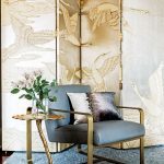 A grand piano is positioned to the rear left side of the room, whilst the final accessory is a hand-painted screen in silver leaf. This floor-standing piece features four panels and is decorated sans traverse with Japanese flying cranes, inspired by a Japanese original. The pattern includes crushed eggshell inlay and was hand-tooled with gold leaf.