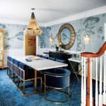 Says the designer: ‘The answer was to treat both influences with a light touch, so that the scheme avoided clashes of style – or any obvious themed look – and maintained a cohesive feel throughout. The two preferences are present instead in material choices, such as the use of slick mirrored pieces, particularly in the master bedroom; strong geometric framed furniture in some instances; plus glamorous chandeliers and distressed timber finishes.’