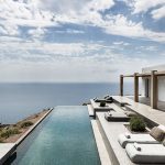 ‘Situated on the island of Syros, Syros Summerhouse accommodates a couple and their various guests. The design process was defined by the clients’ desire to maximise views of the expansive Plagia Bay. The main intention was to unify the various spaces of the house under one roof facing the Aegean, without creating a massive volume; this resulted in a deconstructed rectangle with massive openings from all sides.’