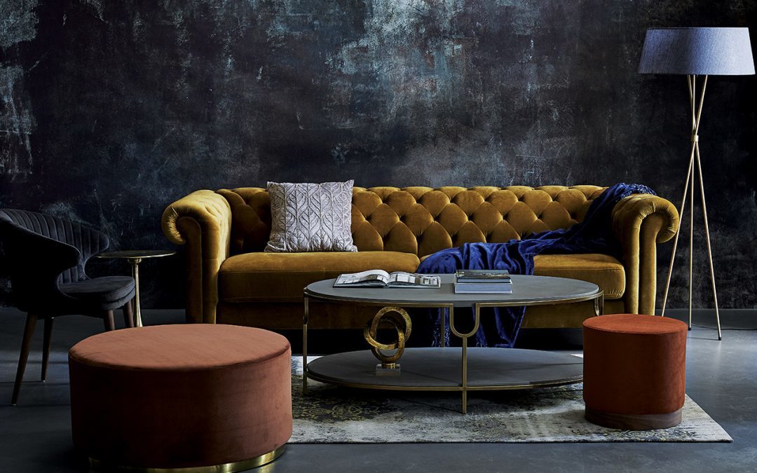 ‘Leathers, suedes and velvets are indeed here to stay, but the added introductions of distressed velvet, highly textured tweed fabrics and genuine aged leather tones the luxuriousness of velvet down. Liveability and comfort are always key.’