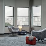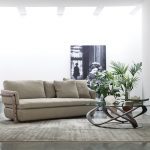 Raffaela Marelli gives other examples on behalf of Flexform / Il Lusso: ‘The aura that envelops the Flexform Mood collection is intimate and sophisticated. It features sofas and armchairs that show traditional stylistic shapes redesigned with a contemporary twist. The Alfred sofa, designed by Roberto Lazzeroni, perfectly epitomises this attitude in conveying a typically ‘New Classic’ flair. Its enveloping seat back curves around, sloping gently from the armrest. Couture details highlight the soft silhouette and the seat back, and cushions are finished with refined tone-on-tone or contrasting colour grosgrain piping.’