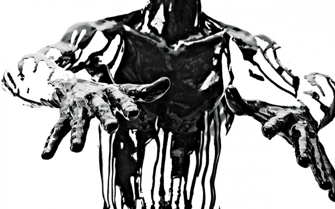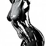 ‘I find this focus – perhaps even the intensity of simplifying both the subject and its colour – as a form of therapy that affects calmness. I pour, splatter and drip paint over the model to attain the effect I am after, sometimes using a paintbrush to help adorn my human canvas. It’s a messy, and again personal experience. I then use my studio setting to photograph my painted human figures, exposing the black paint. Once I have my images I move on to post production where I remove everything except the black paint. It’s important to me to make no alterations on the actual form of the figure as I want it to be true to itself.’