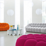 The Bubble Collection is made up of a straight sofa, curved sofa, armchair and round ottoman.