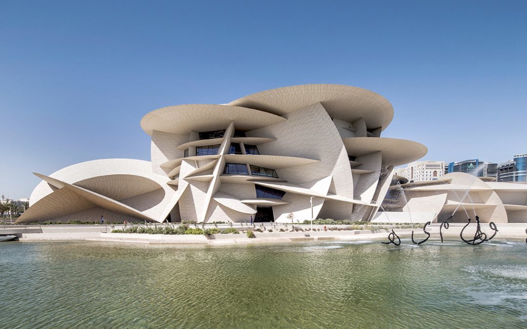 The new National Museum has been opened in the Emirate of Qatar in March 2019. The spectacular building by Frenchman Jean Nouvel is intended to evoke associations with a desert rose. The architect explains that he was looking for a symbol for the National Museum – to evoke Qatar’s heritage and future – and considers his design to embody both.