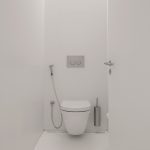 The sand-coloured, polished concrete floor inside harmonizes with the walls. These feature a traditional gypsum and lime plaster finish which is reminiscent of stone. The plain interior continues into the sanitary rooms featuring washbasins and toilets from the Starck 3 range. Developed by Philippe Starck with a focus on semi-public and public areas, these products meet the highest standards of design and functionality.