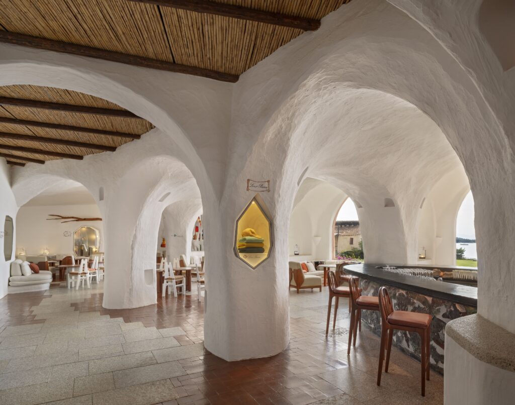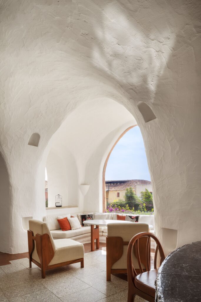 b.m. The envelope is intangible, just like the line, or the curve. It is a tribute to the interplay of cool shadow and bright light. We wanted to reexplore this maze, awaken the energies that were hiding there, make this living organism breathe again, and reinvent the circulation. And, you are right: the hotel had expanded, and colonised its surroundings. We have reconnected it to the vegetation and marine environment that embraces it, at the same time as to life today. Year after year, as the work progressed, we reunited the Cala di Volpe in a coherent hotel concept, speaking a single language, writing a single story.