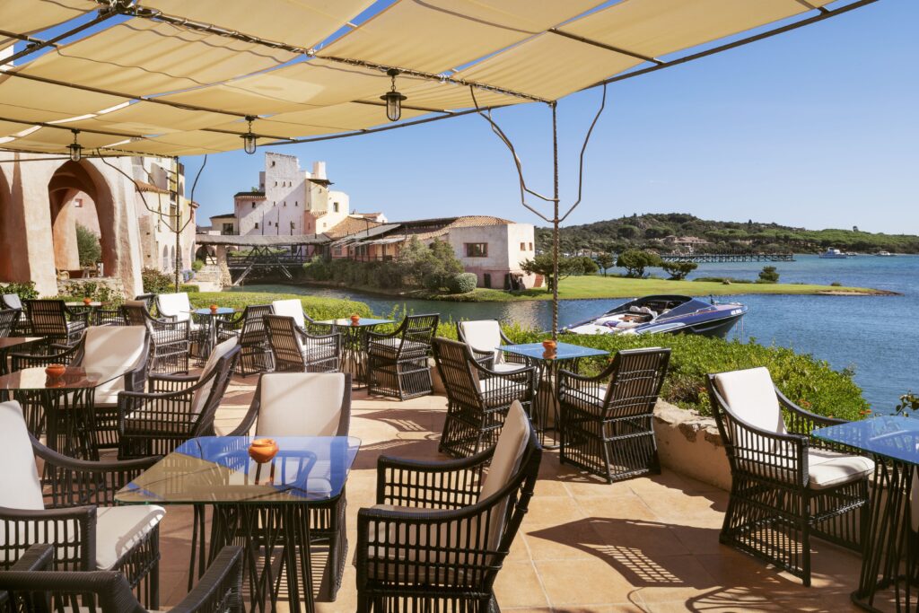 - As a continuation of the restaurant, under its stretched canvas, the terrace serves meals and is equipped with new black wood furniture that echoes the huge pontoon so emblematic of Cala di Volpe, reaching out towards the sea.