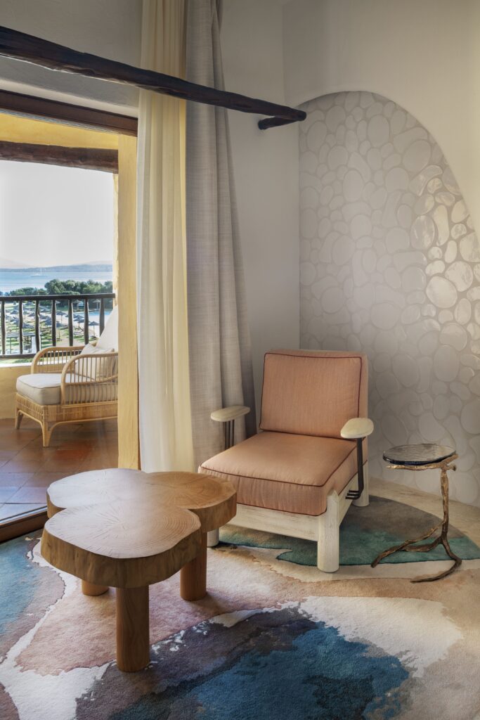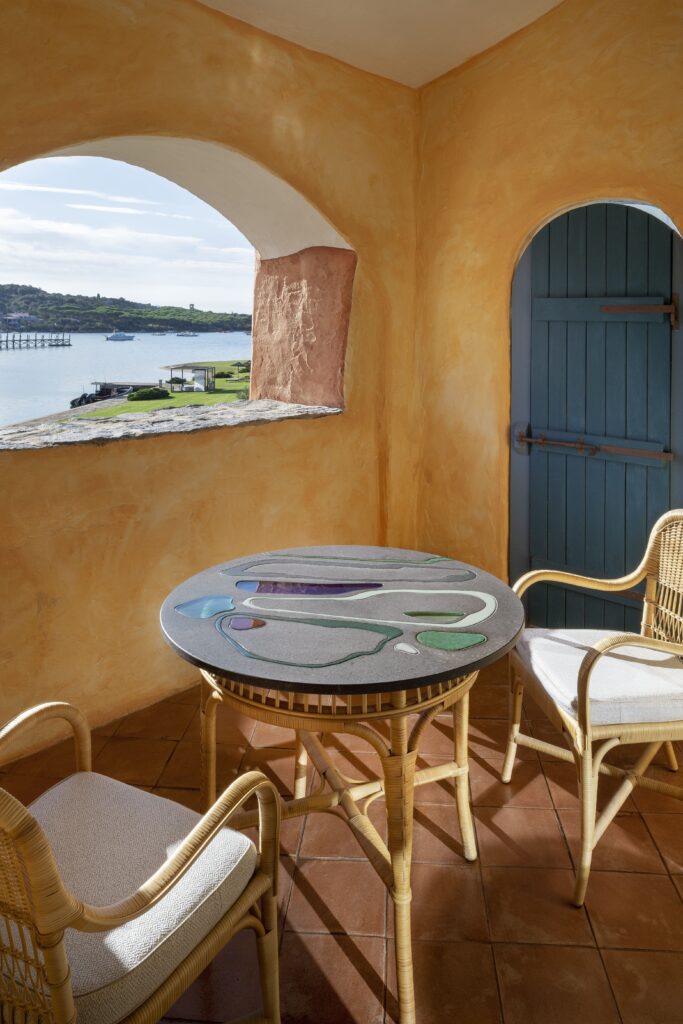 - The terraces are an extension of the rooms and suites. Each of them faces the sea. The rattan furniture has been specially designed for the hotel. It is made by one of the last expert Italian workshops in the material, the same ones that made the furniture when the hotel was created. The tabletop combines stone, enamel and glass creating landscapes reminiscent of the bay of Cala di Volpe…