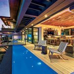 However, the ocean side of the structure is exposed to a prevailing onshore wind and is also in shadow after midday. As such, the outdoor entertainment area and swimming pool were positioned on the inland protected, and sun filled side of the house, but were arranged in a way that still retains sea views.