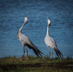 A pair of Blue Cranes triumphantly utter their unison call as they welcome their newly hatched chick into the world by Habitat Magazine | Mar 22, 2019