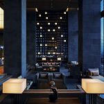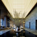The centerpiece of the lobby, soaring nearly 30 metres high, is a majestic architectural feature resembling the interior of a Japanese paper lantern. This vast expanse measures 40 metres long by 11 metres wide and was created with layers of textured Washi paper and stretched with the Shoji frame; the lantern rises six floors through the centre of the building. During the day, it allows diffused sunlight to illuminate the lobby, while in the evenings the ambiance evolves via a series of orchestrated lighting scenes.