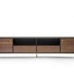 HARLOW – The new TV cabinet HARLOW, which is characterised by very minimal design, is offered with an external framework made of open pore black ash briarwood and with front doors and drawers made of briarwood with matt finish. Its base and feet are made of brushed champagne coloured metal and refer to the handles with the badge of Tonino Lamborghini brand, with a sought-after elegance.