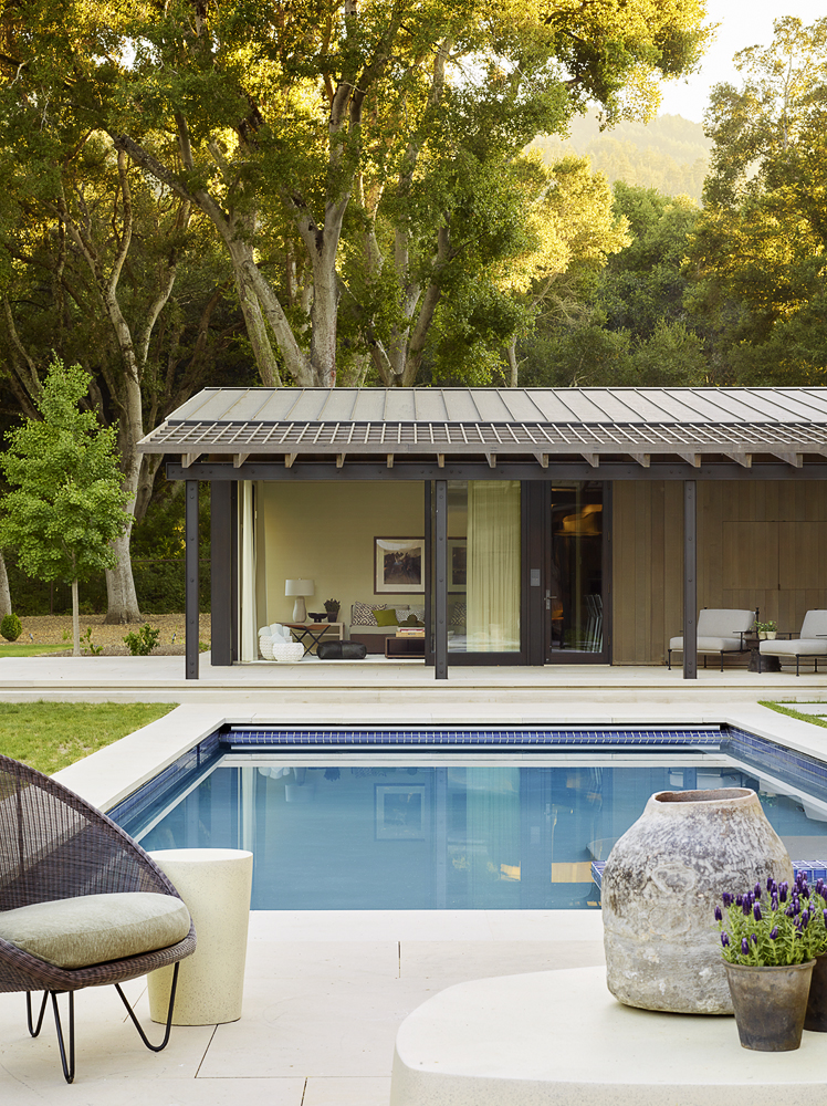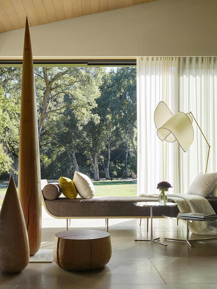 With the property bordering on the open space preserve, landscape designer Bernard Trainor of Ground Studio gently transitioned the manmade garden into the natural surroundings to trick the eye, making the property appear to go on forever. As with the architecture, Trainor’s approach to design was to deftly ‘thread the needle’ between the oaks. ‘Closer to the house, the hardscape and plantings reflect the house’s architectural shapes – more linear. As you move farther away, into the oak woodland, they get wilder.’ Overall, the residence’s indoor and outdoor design reconciles historic context, building constraints, and functionality, resulting in a cohesive and harmonious space for living.
