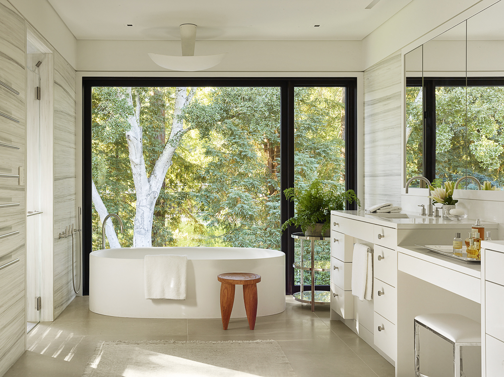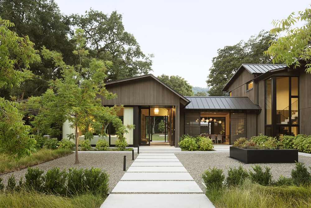 Woodside is a small town in San Mateo County, California on the San Francisco Peninsula. It’s home to many horses and is among the wealthiest communities in the United States. Turning off one of its busy roads, a pair of house hunters drove over a bridge spanning a stream and discovered themselves a world away in a rural setting dotted with majestic oak trees. They were immediately enchanted and, as the husband says, ‘We entered our own peaceful retreat, leaving the Silicon Valley hustle and bustle behind.’ The decision to purchase the property and build a new home was an easy one.