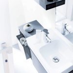 When contemporary sanware and tapware is combined with organic accents it can create a gently dynamic atmosphere that evokes cleanliness and a sensation of cultivated style. The juxtaposition of wood and stone with synthetics is both innovative, combinative and applicable to various interior signatures. Think: an island bathtub, the gloss of porcelain tiles and natural wood used for cabinets and accessories – a combination perhaps supplemented by easy to maintain synthetic man-made stone used for vanity surfaces; a modernist yet appealing composition.