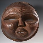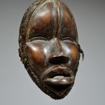 - David Malik Dan mask Liberia / Ivory Coast Wood Early 20th Century Finely carved, pierced at the perimeter for attachment, the pointed chin beneath the full, down turned lips and nose leading to a medial ridge bisecting the slit eyes, fine aged with rich brown patina £2,500 Provenance: – Private collection United Kingdom