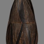 - Marcuson & Hall A Tutsi carved wooden container Tutsi, Uganda wood, carved and scorched early 20th century 27.5 cm high x 11.5 cm wide Good condition, signs of use and age Wooden containers were carved by Tutsi men and often mimic the shape of the baskets, which are made by women. This particular example has a more fluid, curvilinear design as opposed to the more typical geometric zig-zag patterns. It may be a regional variation associated with the Tutsi of Uganda, according to Margaret Trowell in Tribal Crafts of Uganda where a similar piece is illustrated on page 114.