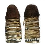 - Louis Nierijnck The body adornment of the Himba people, includes a pair of anklets, also worn as a protection against snake-bites. Ekori headdress, worn after marriage. Also various neck ornaments. The semi-nomadic Himba live with their cattle and goat herds in Kaokoland in Northern Namibia. Instead of cloth, they wear various body ornaments and all bare skin is anoited with ‘otjize’, a mixture of butterfat, aromatic herbs and red ochre powder. ‘Dressing’ is a lengthy ritual, each morning. The ‘otjitze’ protects against the sun and harsh enviroment of the dessert. The body ornaments are made from leather, shell, grass, plastic, copper and so typical, steel nuts. All of these with thick layers of ‘otjitze’. Hairstyle and jewellery play a significant role among the Himba. It indicates age and social status within their community. The earthly red ochre connects the Himba adornment with the African land.