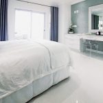 - The white-on-white theme continues in the bedroom and bathroom augmented by plentiful natural light.