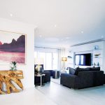 He recalls: ‘We removed every tile, fixture and fitting – stripping the interior completely – to subsequently refit and refurbish. I used an engineer to design the closure of the double volume sitting room so that we could have a private lounge on the upper floor. This was the major structural alteration.’