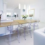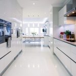 ‘Prerequisites included a high gloss, white Niemann Board kitchen with a timber nook table. We were presented with a white shell – white walls and ceilings and a white Caesarstone floor. What was required was a contemporary look, simple and without clutter.
