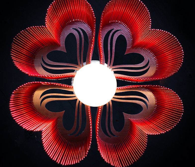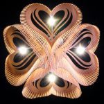 Completing the collection, Lucky Love is the most ‘romantic’ of the range, with more of a floral than a botanical look. Its four heart-shaped segments bow from a single halogen or LED light to resemble an elongated four-leaf clover cutaway, making this pendant best seen from below.