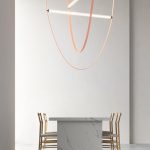 On the flipside, forms have simultaneously become strikingly simple, distilled down to the barest essentials. LED comes into play here, its easy application allowing for more versatile and out-of-the-box designs. Brands like Artemide showed just how pared back you can go with its La Linea light, while the Wireline by Formafantasma for Flos is an elegant curvilinear solution, using a combination of hard and soft elements. “The lamp plays on the contrast between the industrial feeling of the rubber and the sophistication of glass,” says Andrea Trimarchi of Formafantasma.