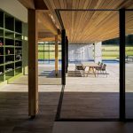 The handwriting of the existing buildings on the site, and the requirement to raise the ground level above the 100-year floodplain, created a linear plan combining the existing disparate agricultural buildings and new modern vernacular forms with a glazed axial gallery.