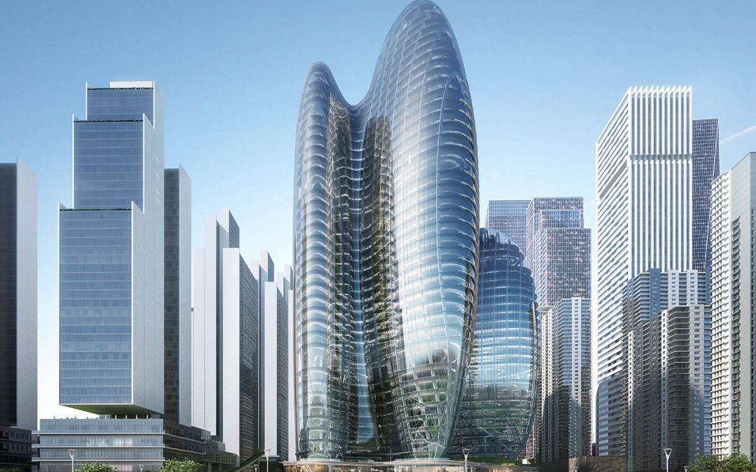 Conceived as four interconnected towers reaching a height of 200m (42 floors), the 185,000 sq.m design incorporates two towers of flexible, open-plan spaces linked by a 20-storey vertical lobby, and two external service towers providing vertical circulation. Orientated to maximize the views over Shenzhen Bay, the towers taper inwards at lower levels creating large civic spaces at street level.
