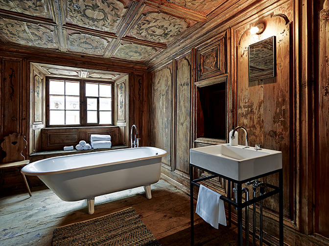 Karin Briefer from Selected Interiors had the task of filling this building with Swiss design classics and / or furniture from Swiss designers. The result is a charming combination between history and the present. ‘It was important to me that the guests feel comfortable. So I selected modern furniture with valuable materials so as not to have a museum effect. To experience living in the space today, the house and its old stories are treasured in the crucial balance achieved between old and new,’ she adds.